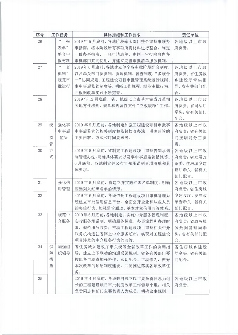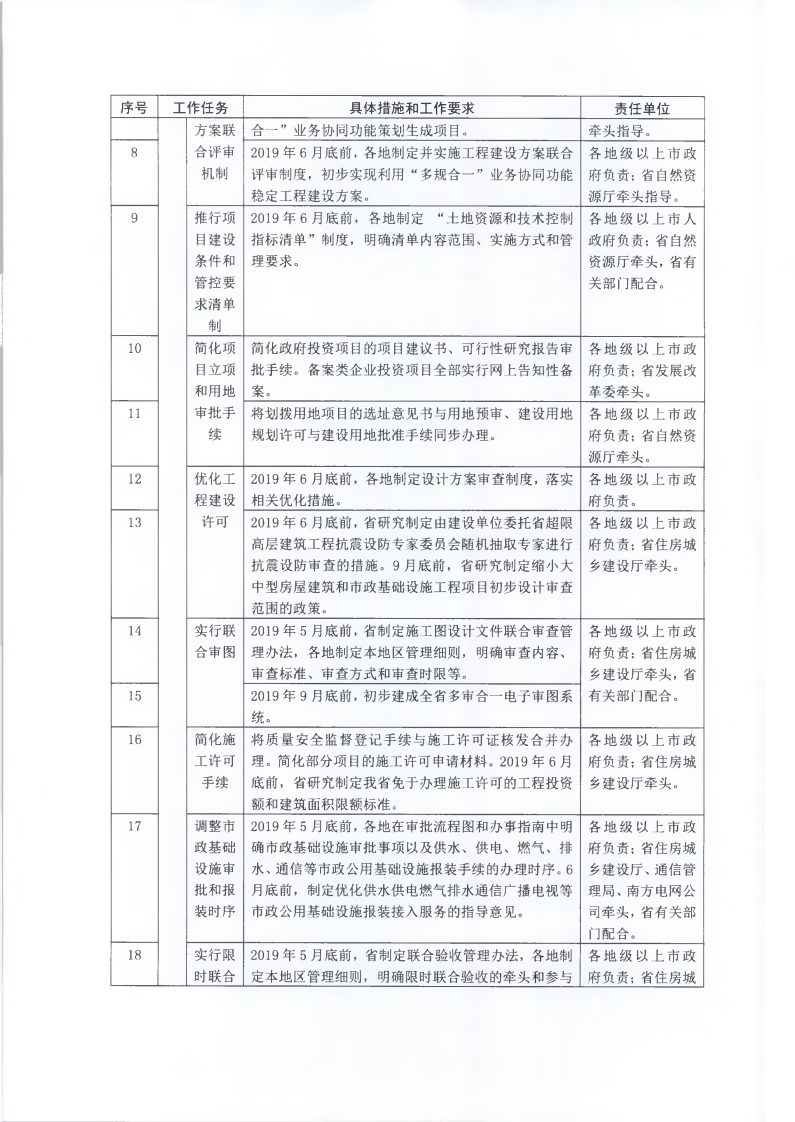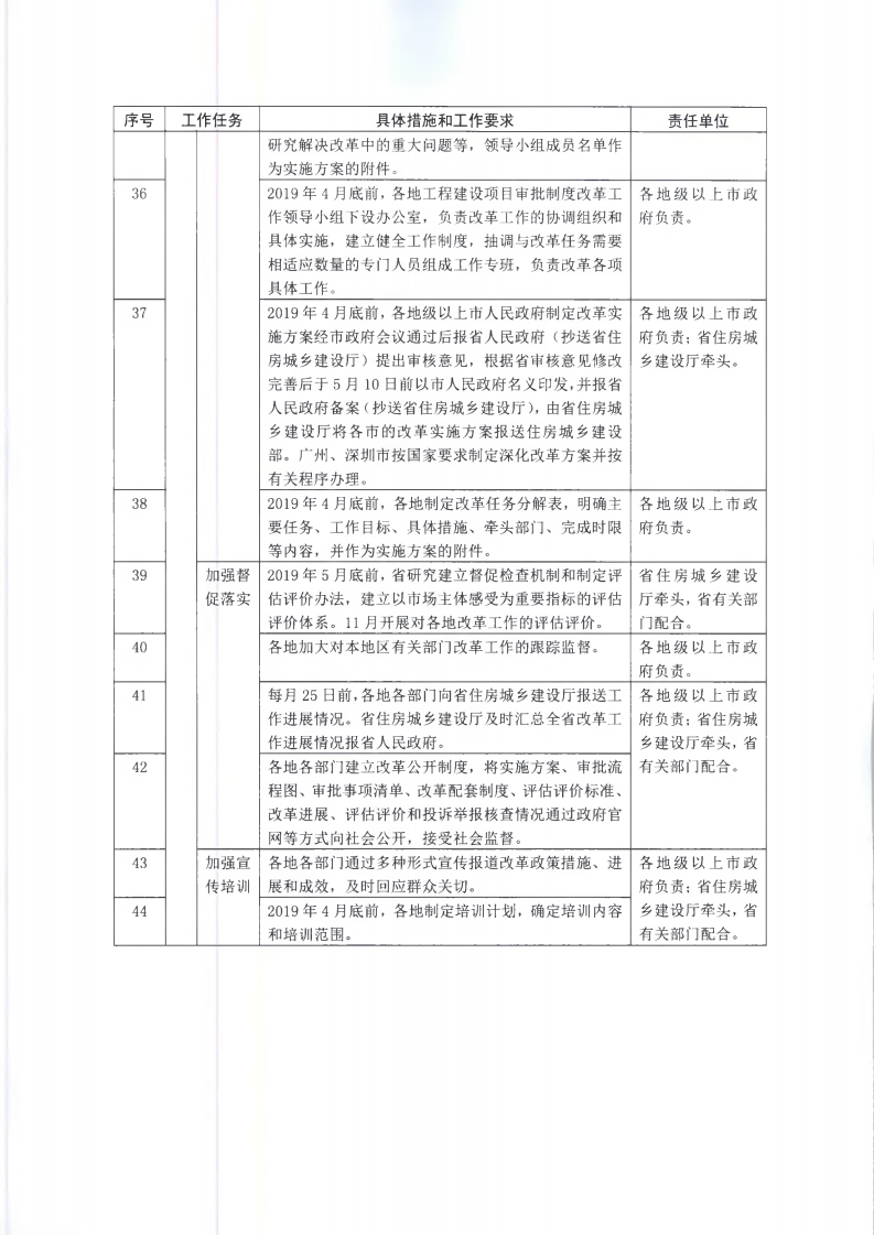 為貫徹落實(shí)《國(guó)務(wù)院辦公廳關(guān)于全面開(kāi)展工程建設(shè)項(xiàng)目審批制度改革的實(shí)施意見(jiàn)》(國(guó)辦發(fā)〔2019〕11號(hào))和《廣東省人民政府關(guān)于印發(fā)廣東省全面開(kāi)展工程建設(shè)項(xiàng)目審批制度改革實(shí)施方案的通知》(粵府〔2019〕49號(hào))要求,經(jīng)省人民政府同意,現(xiàn)將《廣東省全面開(kāi)展工程建設(shè)項(xiàng)目審批制度改革任務(wù)分解表》印發(fā)給你們,請(qǐng)認(rèn)真組織實(shí)施。